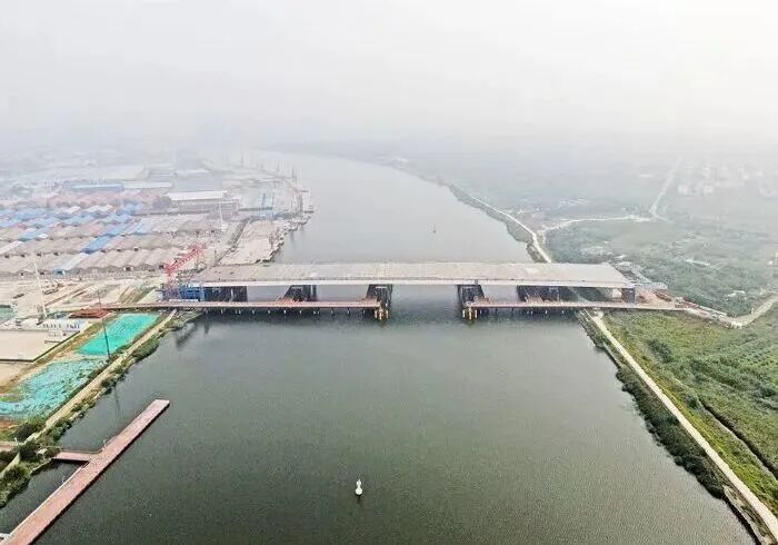 这标志着工程核心建设取得重大突破。该工程攻克了大面积钢梁顶推和大节段钢拱肋竖向提升合龙等国际罕见技术难题,建成后将成为亚洲在建单跨最长、桥面最宽的下承式简支提篮钢箱系杆拱桥,极大提升滨海新区南北向道路通行能力。